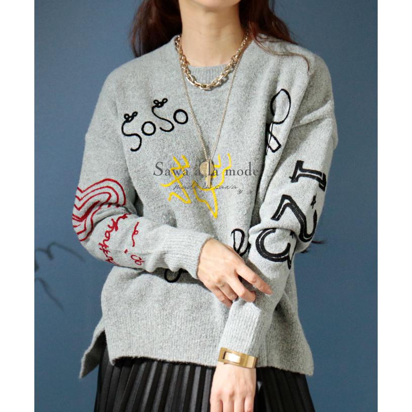 レディース トップス ファッション ニット 刺繍 スリット 長袖 グレー 冬 秋 冬服 秋服 大人カジュアル カジュアル お洒落 30代 40代 50代 60代 サワアラモード Aljp298 Sawa A La Mode サワアラモード 通販 Yahoo ショッピング